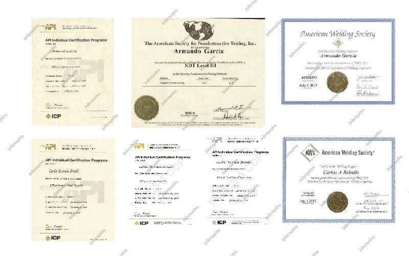 Nuestro personal de inspección están certificados como Niveles I y II SNT-TC-1A. Y como niveles III ASNT.